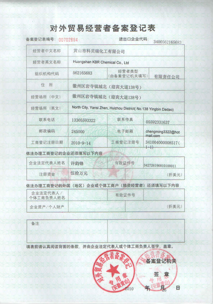 郵箱:johnxu@kbrchem.com